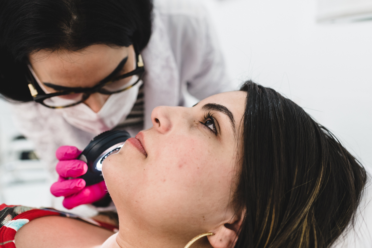 Doctor examining acne